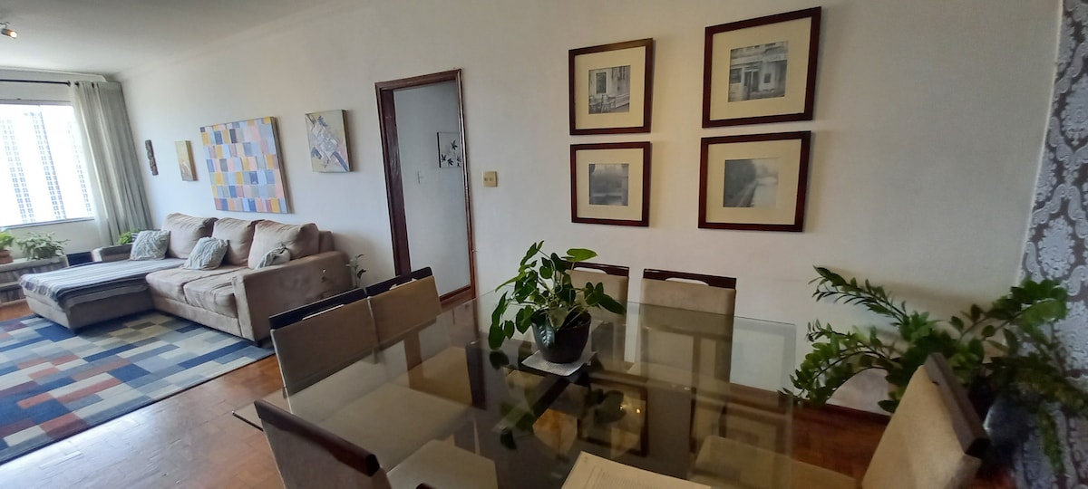Prostran, potpuno namješten stan sa svim sadržajima, garažom i nalazi se u centru grada. Smart TV s Telecine/HBO, Netflix i Globoplay. Mašina za pranje i sušenje veša.