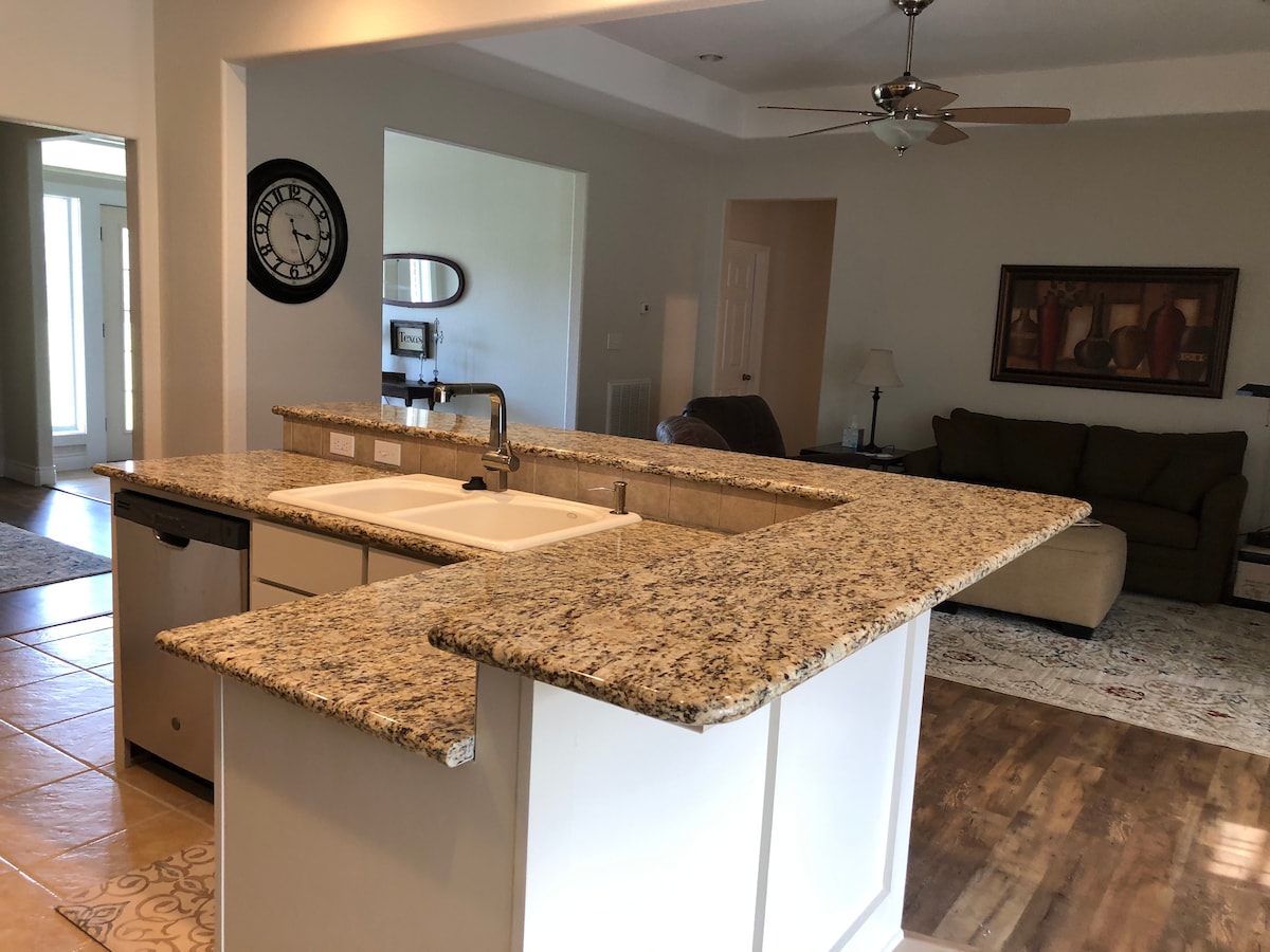 Opustite se s cijelom porodicom u ovoj mirnoj kući na ranču na 50 prekrasnih hektara. Uživajte u jutarnjoj kavi u stražnjem dvorištu s mirnim pogledom na naše dvorište. Za jedinstveni doživljaj, popnite se na Longhorn Lookout i uživajte u neometanom pogledu na imanje iz zraka. Sa neobičnom vinarijom samo 7 minuta niz cestu, nećete imati problema da popunite svoje vrijeme daleko od kuće! Pogledajte vodeni park Splashway za više zabavnih porodičnih avantura tokom vašeg boravka.