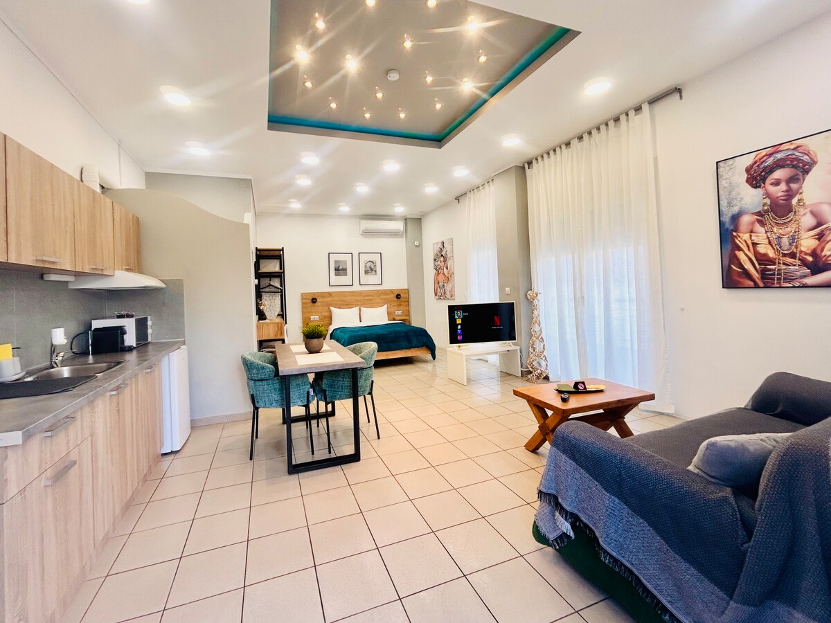 Boravite i opustite se u ovom modernom i minimalističkom uređenom studio apartmanu u blizini centra Soluna, koji može biti savršena baza za istraživanje grada. Savršen izbor za parove, samce i poslovne ljude s besplatnim privatnim parking mjestom. Samo nekoliko minuta od restorana,barova,kafića i trgovina. Stan se nalazi na 7. spratu stambenog kompleksa, 200m udaljen od željezničke stanice, javne autobuske stanice i stanice metroa. Trgovački centar One Salonica nalazi se 300 m od studija.