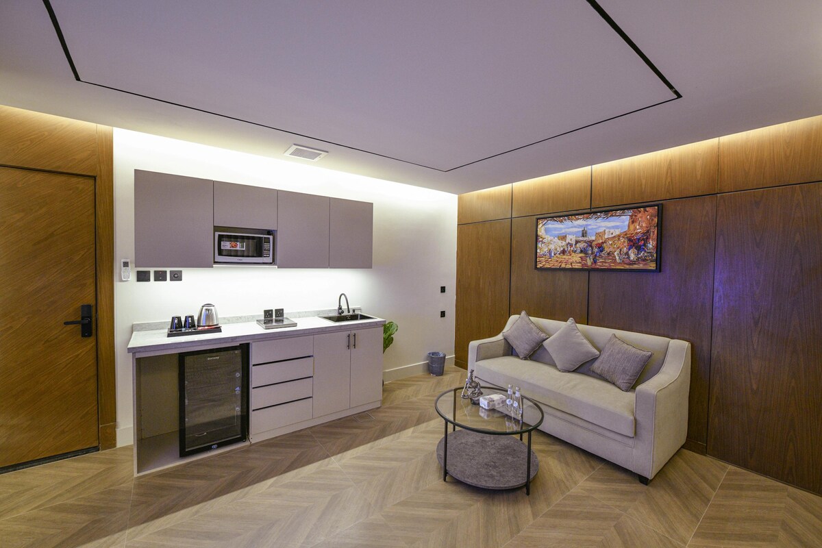 Uživajte u mirnom boravku u privatnom studiju koji se sastoji od spavaće sobe i kupatila, s glavnim krevetom i bočnim sjedištem. Usluge: - Pametni TV nosači. - Brz i besplatan internet. - Samostalni dolazak i visoka privatnost. Lokacija: Nalazi se na sjeveru Rijada, u blizini sezonskih događaja u Rijadu.