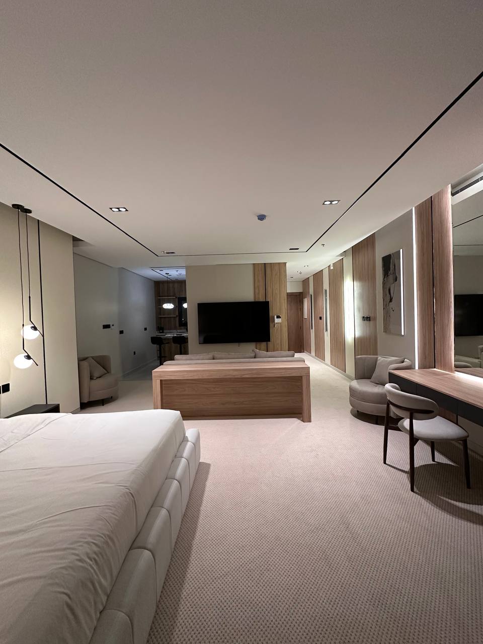 Ovaj jedinstveni smještaj ima stilski uređen kako bi ponudio udobnost, eleganciju i dašak luksuza. Svaka soba je pažljivo namještena s elegantnim uređenjem i vrhunskom završnom obradom. Uživajte u vrhunskim sadržajima, uključujući VIP doživljaj, QLED televizore s ravnim ekranom, aparate za čaj/kafu, sušila za kosu, mekane peškire i besplatan paket dobrodošlice. Bilo da ste ovdje zbog kratkog odmora ili dužeg boravka, osjećat ćete se kao kod kuće uz našu modernu udobnost i personalizovane detalje.
