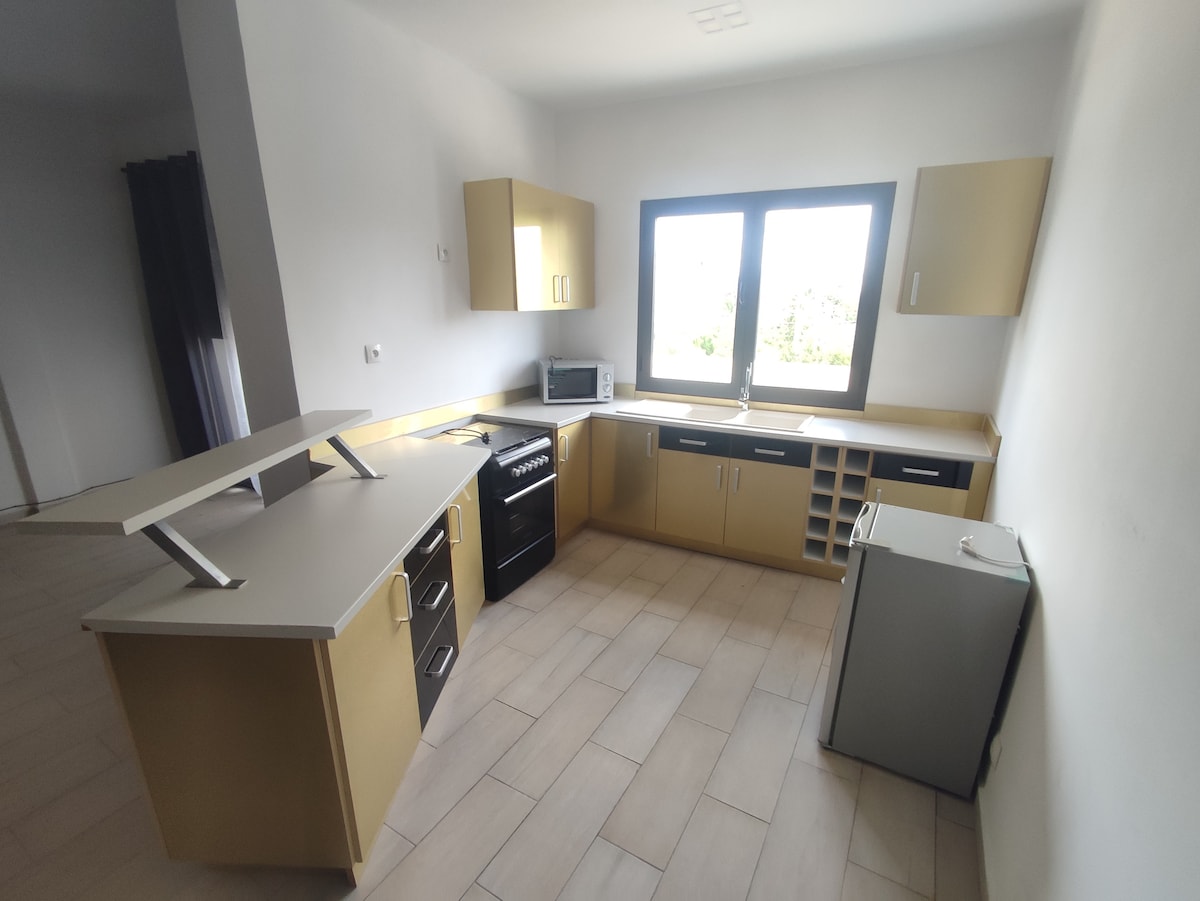 Résidence Calme. Un havre de paix pour s'évader de la vie quotidienne. Offrez vous un séjour inoubliable. Nous disposons de 2 suites climatisées, 1 chambre ventilée avec salle de bain attenante. Une cuisine intérieur équipée ouverte sur un salon spacieux. Un espace extérieur zen offrant une grande terrasse couverte sur une piscine, une cuisine exterieure bien équipée avec barbecue. Bien évidement femme de MÉNAGE, WiFi, TV et Gardiennage inclus.
