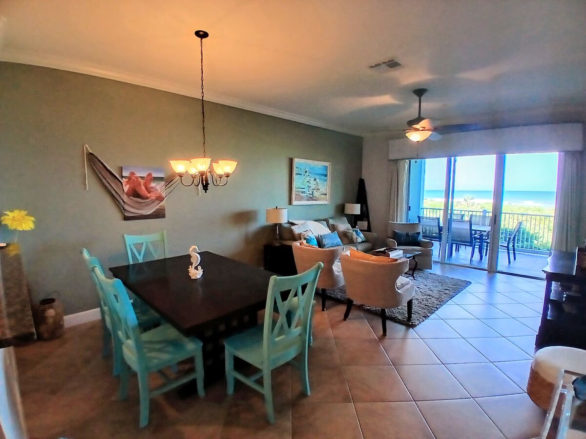 Top floor, direct oceanfront 2 bedroom, 2 bathroom condo with elevator and unobstructed beach views from the private balcony, master bedroom, living room, dining room and kitchen. Located in beautiful St. Augustine Ocean & Racquet Resort. We also rent out the corner unit immediately next door, Ocean Front Gem, which is great for those traveling with friends: https://www.airbnb.com/h/saint-augustine-oceanfrontgem Our checkin and checkout process are contact free. We use a Nest lock on the door.