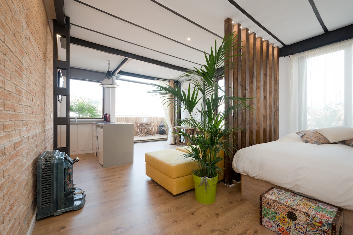 Stan otvorenog plana koji je u potpunosti renoviran s ljubavlju, stilom i vrhunskim kvalitetom u zgradi s mnogo šarma i drvenim plafonima. Nalazi se u ulici koju je restaurirao UNESCO u samom centru. Pored trga Plaza Nueva i nekoliko minuta hoda od Alhambre i katedrale, Paseo de los Tristes i prekrasnih i karizmatičnih četvrti Albaicín i Realejo. Također, odmah ispod stana nalaze se autobusi do Alhambre i Albaicina ako ne želite hodati uzbrdo.
