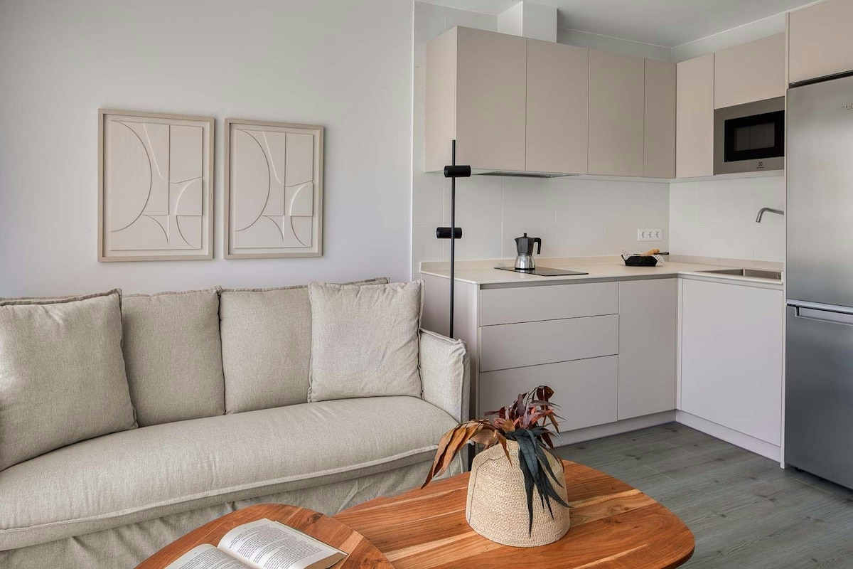 AT1375AS Apartamento en planta baja con jardín y terraza privada con todo lo necesario para el descanso. Cocina moderna totalmente equipada en espacio abierto junto al salón, grandes ventanales con acceso directo al jardín. Baño espacioso con plato de ducha. Habitación amplia con cama extra grande, grandes ventanales y bañera incorporada para tus momentos de relax, salida directa al jardín. Suelo radiante para los días de invierno. Aparcamiento privado.