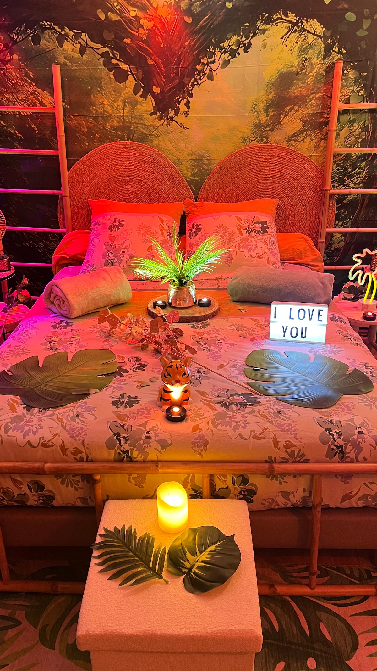 ✨ Découvrez le Mirage Tropical , une parenthèse raffinée au bord de la Loire 🌴. Profitez d’un jacuzzi privatif, d’une terrasse élégante et d’un espace jungle dépaysant pour vous évader. Amusez-vous autour du jeu de fléchettes, partagez un apéro exotique ou détendez-vous dans une atmosphère unique. Le soir venu, la chambre s’illumine de couleurs envoûtantes pour un moment chic et romantique 💖. Ici, chaque détail sublime votre séjour pour créer des souvenirs mémorables.🌴❤️❤️💕💕💕👄🫂❤️