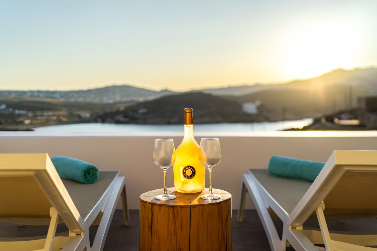 Luksuzni apartman od 39 m² + terasa od 45 m² s privatnim bazenom, vanjskom jacuzzi kadom za 3 osobe i panoramskim pogledom na more. Uključuje bračni krevet s anatomskim madracem, kauč od guščjeg perja (za još 1 osobu), potpuno opremljenu kuhinju, 55-inčni Smart SAMSUNG TV s besplatnim Netflixom i Bluetooth Hi-Fi SONY zvučni sistem. Velika namještena terasa s vanjskim trpezarijskim prostorom i kikladskim ugođajem. Uživajte u potpunoj privatnosti, udobnosti s 5 zvjezdica i podršci konsijerža. Idealno za parove ili male porodice koje traže elegantan, privatan i izvanredan jedinstveni bijeg na Mikonos.
