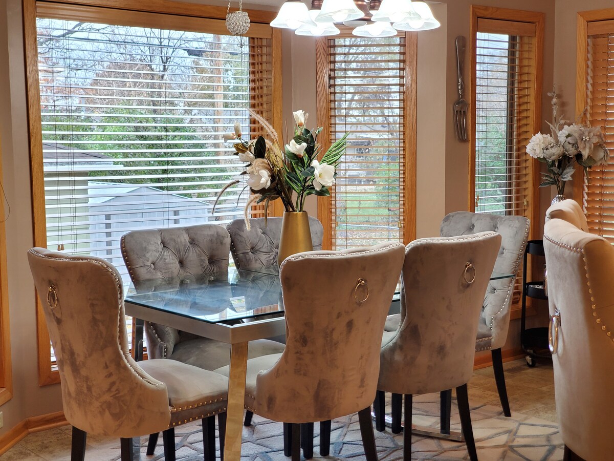 Odlično okupljalište za više porodica ili grupu prijatelja! Nalazi se na samo 10 minuta od centra Minneapolisa. Uživajte u opuštajućem odmoru s masažnom kadom i saunom (dostupno tokom cijele godine!), 3 kupatila, opskrbljenim kafićem/čajnim barom, igralištem, brojnim društvenim igrama, sunčanim trijemom za jutarnju šoljicu kafe i velikom vanjskom terasom s trpezarijom za cijelu grupu (dostupno od maja do oktobra). Mi ćemo obezbijediti drvo i štapove za pečenje kako biste uživali u vanjskom kaminu. Uživat ćete u boravku ovdje!