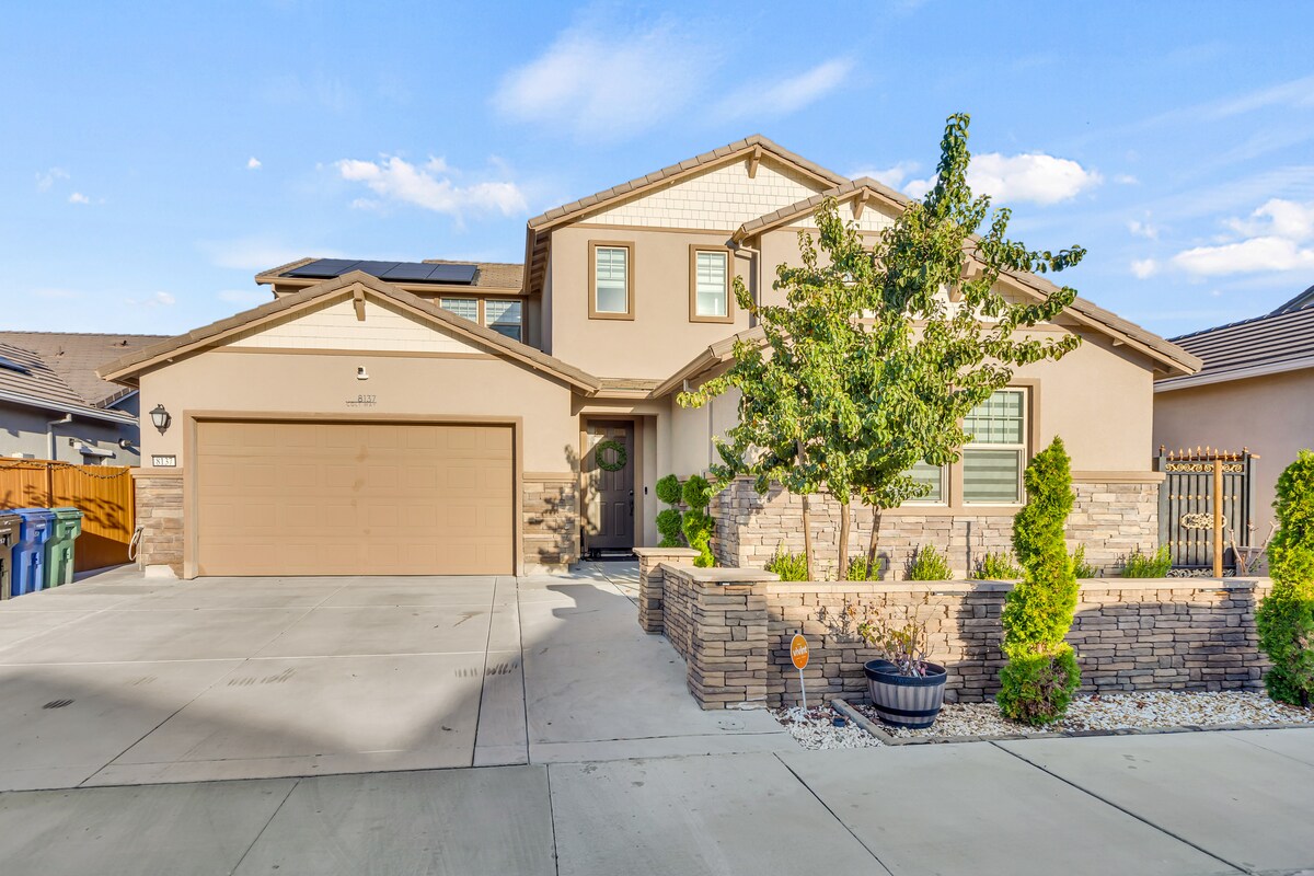 Novoizgrađeno moderno luksuzno utočište Opustite se u ovom lijepo uređenom, novoizgrađenom domu, savršenom za porodice ili grupe. Uživajte u elegantnim, modernim završnim obradama, udobnim stambenim prostorima i kupatilima sličnim spa centrima. Ukupno 5 spavaćih soba i 3 kupatila. Opremljen punjačem za električna vozila koji možete koristiti. Nalazi se samo nekoliko minuta vožnje od jezera Tahoe i jezera Folsom. Avanture na otvorenom i lokalni sadržaji su lako dostupni. Doživite savršen spoj udobnosti i luksuza za miran i nezaboravan boravak.
