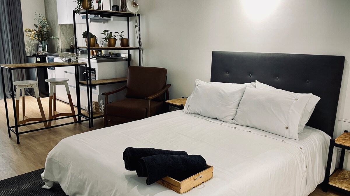 Elegantan i udoban studio u Pobladu, pažljivo dizajniran kako bi pružio udoban boravak ispunjen Medellin slikama i ikonama kako biste se osjećali kao paisa! Savršeno za duži boravak. U blizini glavnih tržnih centara, restorana, stanice podzemne željeznice i glavnih ulica, tako da je kretanje vrlo jednostavno. Nevjerovatan besplatan zajednički radni prostor u zgradi s kafićem u kojem možete doručkovati ili ručati. Besplatan pristup teretani 24 sata i plaćena praonica veša
