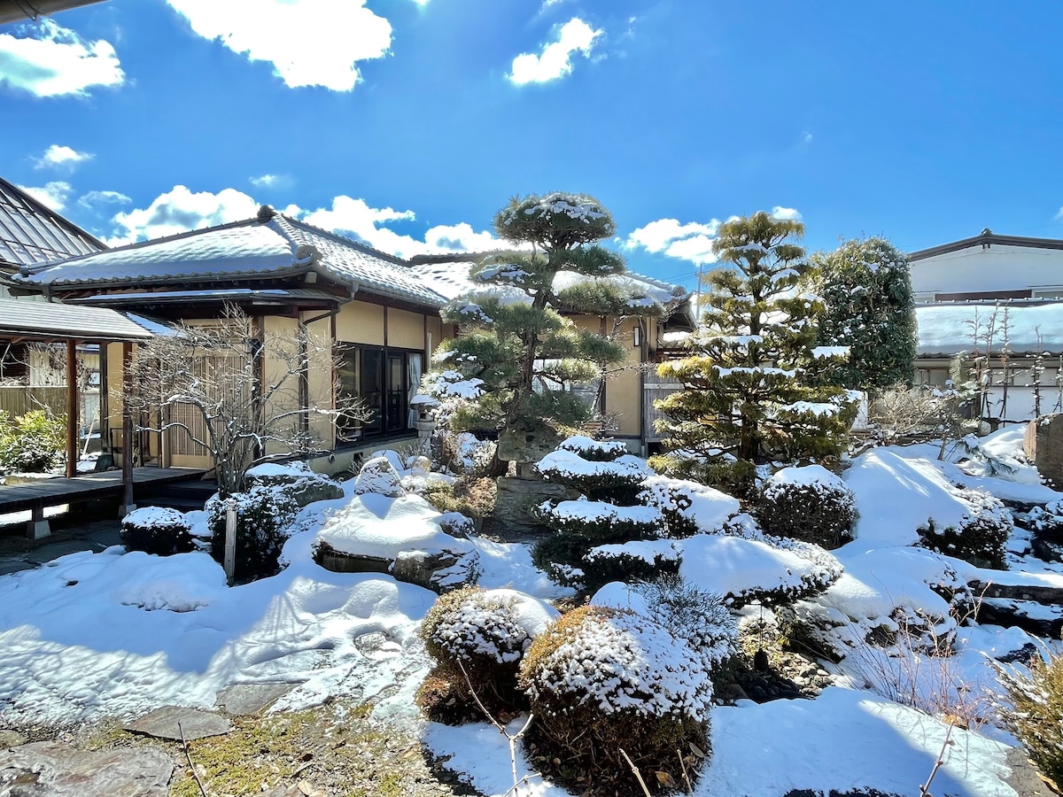 *PLEASE SEE SECTION BELOW* Located in north-middle Nagano, Omi is a beautiful and quiet small village. Filled with beautiful landscapes of Japanese farming lands and mountains which are enjoyable throughout the seasons. Our 130 year-old traditional Japanese house has been renovated for your comfort while holding onto its history. Renewed as a duplex house! You have almost the entire 1st&2nd floors of the west side of the house. Limited to one group per day. Please see below about the house.