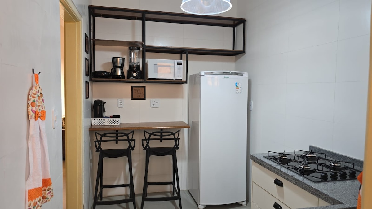 Apt aconchegante ideal para dias tranquilos e confortáveis. Possui dois dormitórios, ambos suítes com ar-condicionado, além de um banheiro social. As camas de molas ensacadas garantem uma ótima noite de sono. O espaço oferece Wi-Fi, roupa de cama, toalhas de banho e uma cozinha equipada com utensílios, air fryer, micro-ondas, torradeira e cafeteira, além de um acolhedor cantinho do café. Localizado no 2• andar, com 2 lances de escada. Garagem rotativa inclusa para 1 carro.