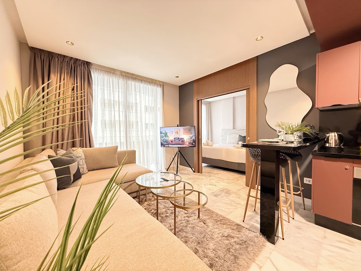 Bienvenue chez H Suites Casablanca, cet appartement de 50m² a été pensé et aménagé en suite privée, offrant un écrin élégant au cœur de la ville. Cette suite offre une chambre avec grand lit 160*200, un salon raffiné avec salle à manger, une cuisine équipée et une salle de bain moderne avec douche italienne et nécessaire de toilette. Accès autonome, wifi, climatisation. Idéalement située, à proximité du Bd Ghandi, commerces et restaurants, station Tramway à 150m, à 10 min de Casa Finance City.