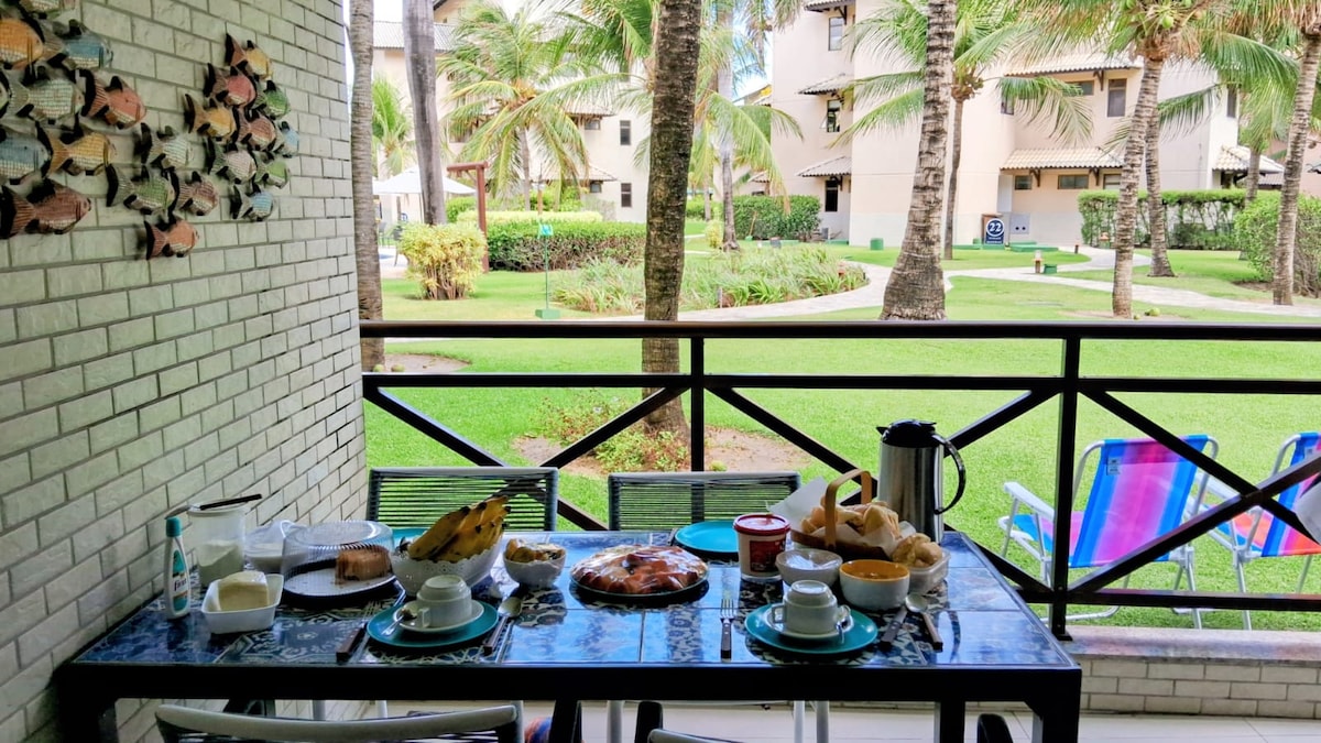 Savršen stan za porodice u odmaralištu uz plažu. Boravite u odmaralištu s kompletnom strukturom za odmor, savršenom za porodice koje se žele opustiti, uživati u plaži i nezaboravnim danima u udobnom, potpuno opremljenom apartmanu u prizemlju, okrenutom prema vrtu, s klimatizovanim, udobnim, uređenim gurmanskim balkonom, u najvećem odmaralištu na sjeveroistoku, s restoranima i vrlo blizu parka na plaži. Doživite nezaboravne trenutke u ovom jedinstvenom i idealnom mjestu za porodice.