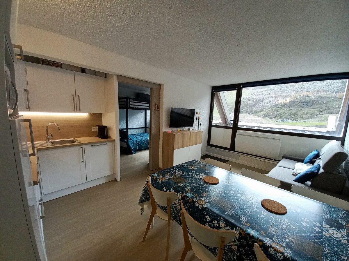 Otkrijte šarm ovog smještaja koji je u potpunosti renoviran 2023. godine od 19 m2 u podnožju skijališta i planinarenja s urednim i modernim stilom. U Residence KLUBU ENGALY II koji je najbliži ski liftovima i prodavnicama. Kupatilo s kadom koja je vrlo lijepa nakon cjelodnevnog skijanja. Klizna vrata za privatnost. Dostupno: Rerna Mikrovalna pećnica Indukcijski lim za pečenje Kuhalo za vodu. Raclette usluga Sušilica za peškire TV 102 cm