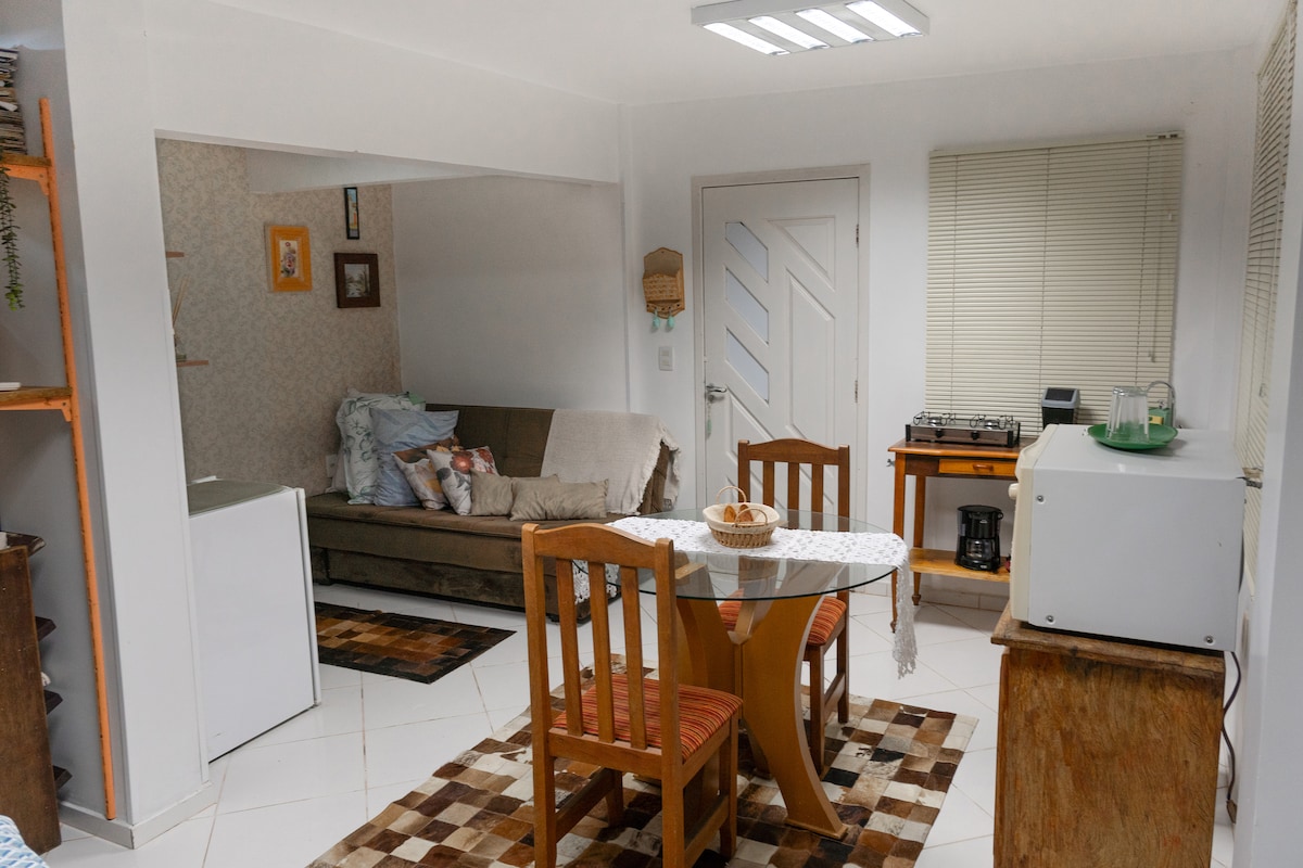 Kompletan prostor s kupatilom, mini kaputom, 1 kaučem na razvlačenje (bračni krevet) i 1 bicama (2 jednokrevetne). Smjestite se u Boa Visti, 5 minuta od Centreventos Cau Hansen (Joinville Dance Festival).
