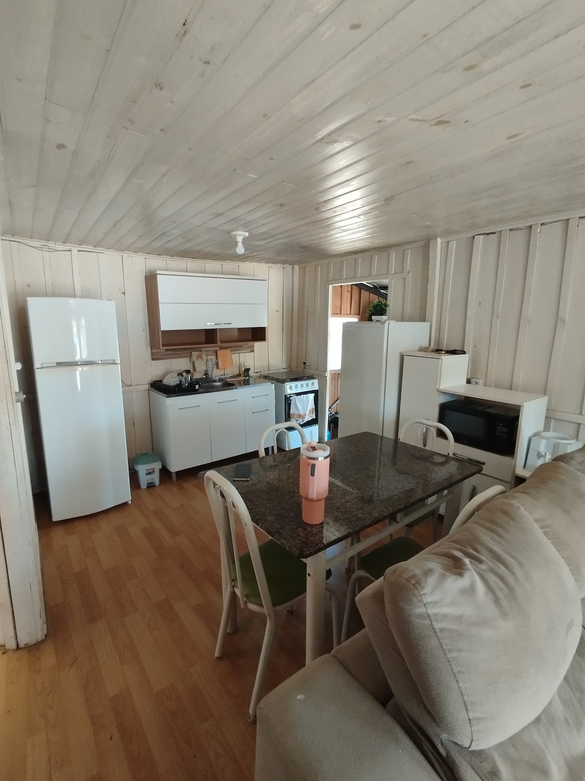 Cabana charmosa em Araquari SC, localizada no Itapocu, com fácil acesso à BR-101 e a apenas 5 km da Praia da Barra do Itapocu. Cozinha equipada com micro-ondas, liquidificador e utensílios básicos. Não há fogão, sendo indicado trazer refeições prontas apenas para aquecimento. Um espaço acolhedor em meio à natureza, ideal para descanso, pesca e momentos a dois. Perfeita para quem busca privacidade, contato com o verde e um cenário tranquilo à beira do lago.