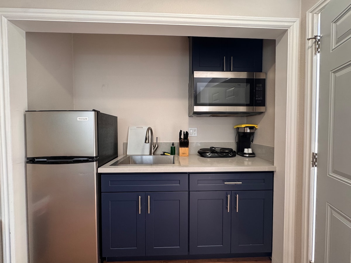 Novi građevinski 2 kreveta 1 kupatilo Moderni skriveni dragulj! Ova kuća za goste ima svoje privatno dvorište, ulaz i prilaz. Na nešto manje od 600 stopa kvadratnih, nijedan kamen nije ostavljen da se vrati prilikom dizajniranja ovog prostora. Ovaj otvoreni koncept Home ima dnevni boravak s kaučem za spavanje, Roku TV-om od 50", trpezarijskim stolom s 4 stolice, daljinskim upravljanjem klima-uređajem i sistemom za grijanje. Kuhinja s mikrovalnom pećnicom, rernom, frižiderom i mašinom za pranje/sušenje veša. Kupatilo s kadom i tušem. 2 spavaće sobe, 1 s bračnim krevetom i druga bračna kreveta.