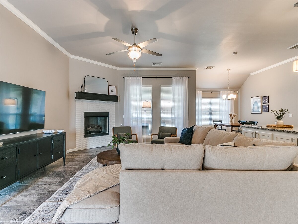 Dobro došli u Everyday Haven, smještaj dizajniran imajući na umu porodice. Smješten u ograđenom kvartu u blizini parkova, supermarketa i restorana, ovaj čisti otvoreni prostor nudi savršen spoj udobnosti i praktičnosti. Smješteni manje od 15 minuta od ulica I-35 i 30 minuta od OKC-a, samo vas nekoliko trenutaka dijeli od Bricktowna, sajmišta i još mnogo toga. Bilo da se radi o odmoru vikendom ili dugom boravku, Everyday Haven nudi fleksibilnost i spokoj koji su potrebni vašoj porodici da bi se osjećala kao kod kuće.