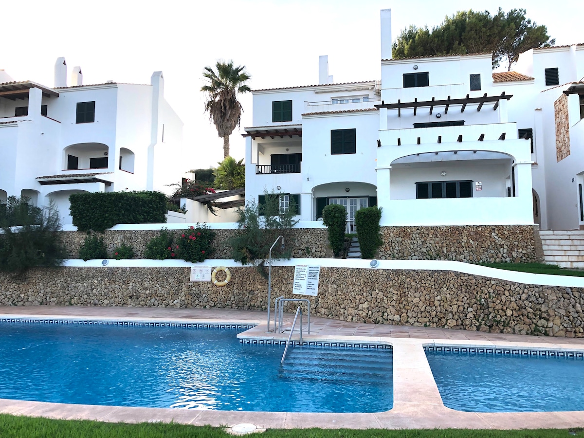 Lijep i udoban stan u potpunosti vani, s privatnim vrtom i bazenom, s balkona možete vidjeti prekrasnu plažu Arenal D'en Castell. Stambeni prostor, s jednostavnim parkingom, ima svu udobnost malog primorskog sela, kao što su supermarketi, apoteke, restorani i prostori za slobodno vrijeme, a prekrasna plaža Arenal udaljena je 200 metara