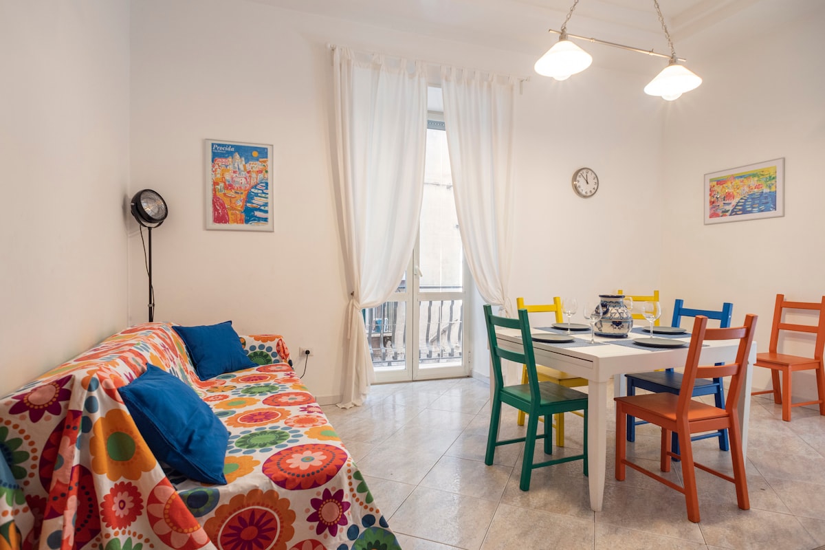 Enjoy a unique experience in the splendid Vesuvius view Suite+Breakfast and WelcomeWine.With this accommodation in the center ofNaples,your family will be close to everything.Just steps from the CentralStation and the main attractions.Getting around on foot or by public transport has never been easier.The apartment is bright and functional with a fully equipped kitchen,sleeps four,air conditioning/heating,Wi-Fi,washing machine,in an ancient building with a lift•Free parking and H24secure Parking
