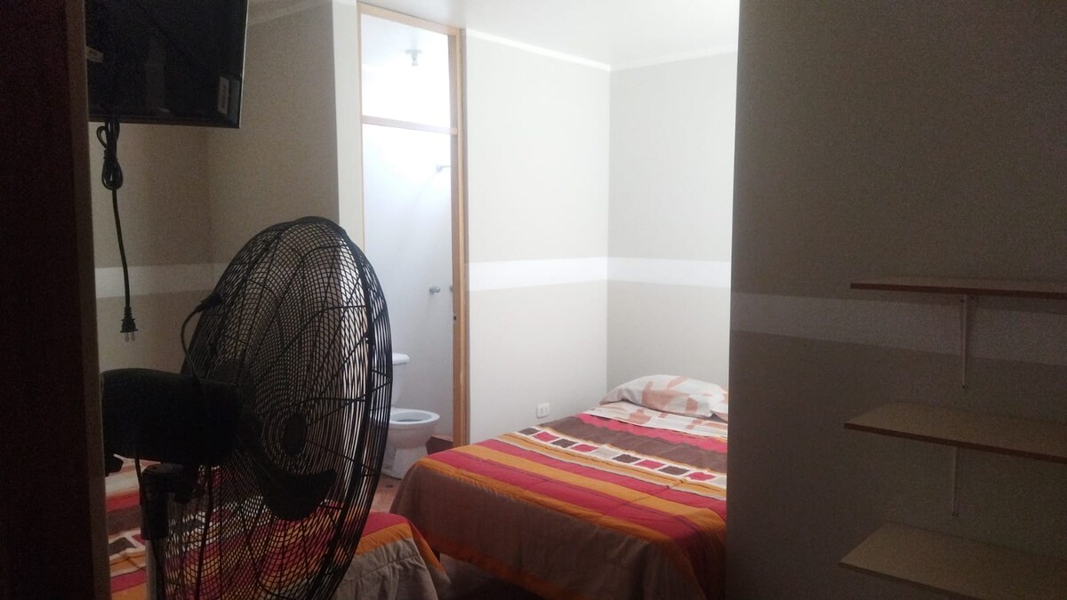 Udobna soba s nezavisnim ulazom u Nazci, savršena za parove, male grupe i male porodice. Smješten na prvom spratu, ovaj moderni prostor ima bračni krevet, krevet za jednu osobu, kupatilo s toplom vodom, mali dnevni boravak, frižider u baru, stojeći ventilator i Wi-Fi. Uključuje kablovsku TV, pristup zajedničkoj kuhinji i praonici veša; prostrani parking. Nalazi se u sigurnom području, samo 15 minuta hoda od glavnog trga. Idealan izbor za udoban i opuštajući boravak u gradu.