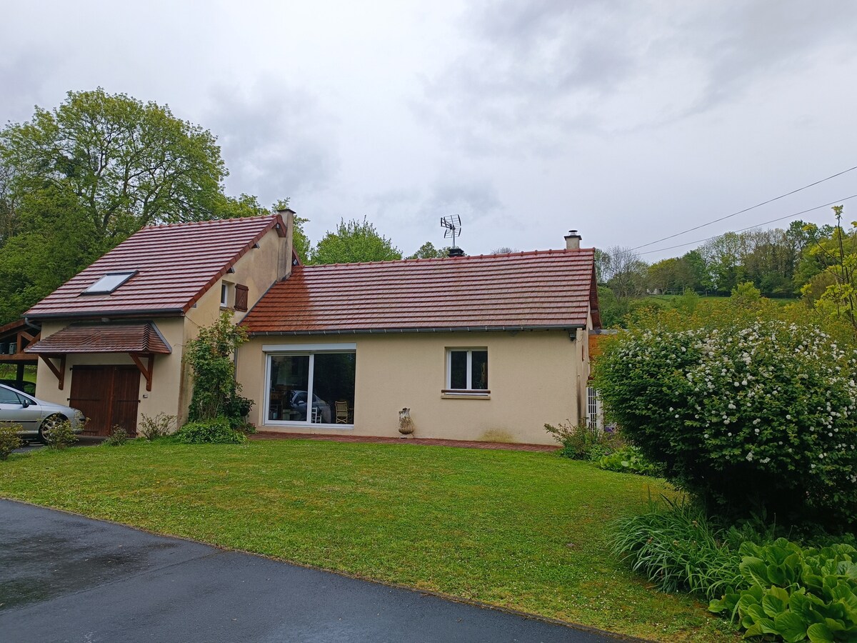 Prostran, prostran, gostoljubiv, topao, u zelenom gnijezdu i omeđen malim potokom u centru Pays d 'Augea. Velika parcela od 8000 m2 ograđena i šumovita, okružena pašnjacima, savršena za djecu. Kvalitetan namještaj i raspored spavanja Potpuno opremljen uređajima, Wi-Fi mrežom i TV paketom. Kuća je klasifikovana kao „namješten turistički smještaj” s 5 zvjezdica. Posteljina i peškiri su dostupni samo s vašim ličnim stvarima.
