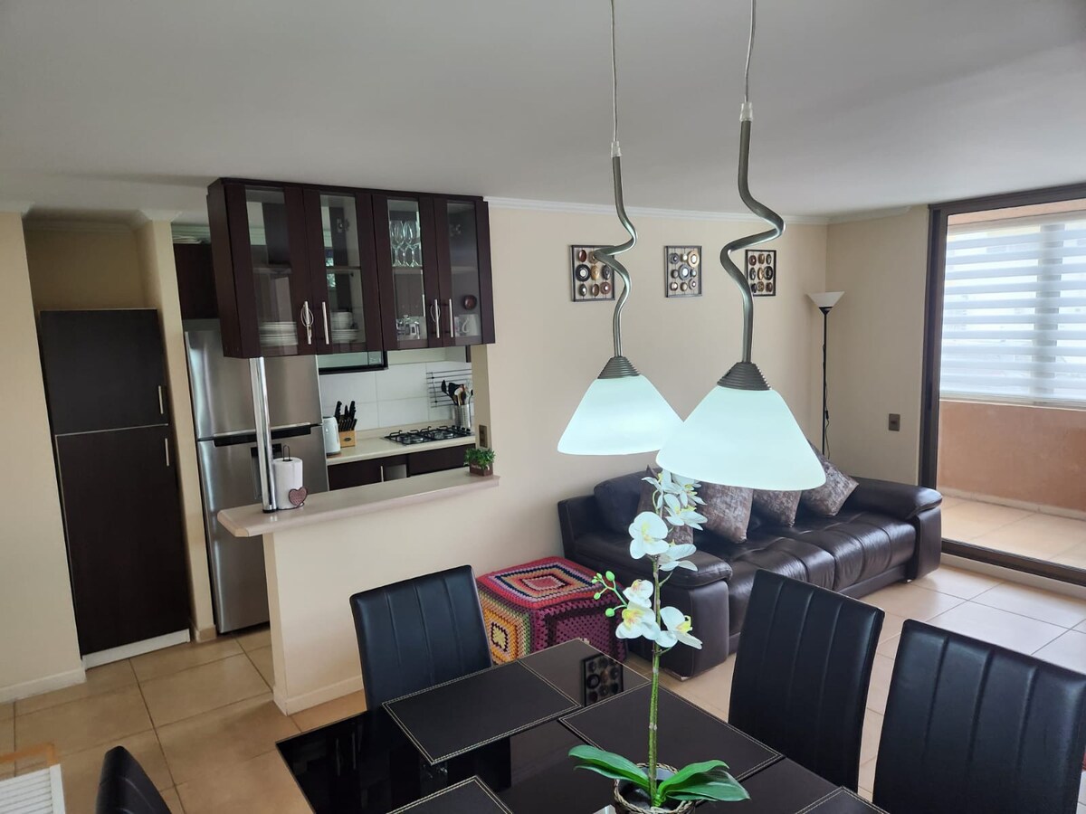 Udoban stan za 6 osoba, nekoliko minuta od plaža Chinchorro i Las Machas, močvare rijeke Lluta i tržnog centra ▶ Spavaće sobe i prostori: Glavni: dvosjed i ormar. Drugo: 1 krevet za jednu osobu + kauč na razvlačenje i ormar. Treća: krevet za jednu osobu, ormar i radni stol 2 kupatila Dnevni boravak s kaučem na razvlačenje za 2 osobe. ▶ Usluge u sklopu stana: Bazen, roštilj, parking i osiguranje 0–24. Idealno za porodice ili grupe koje traže udobnost, dobru lokaciju i odmor