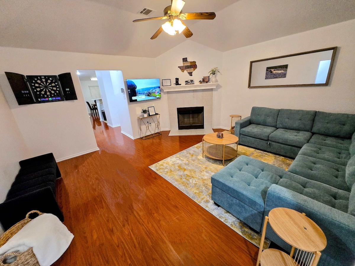 Vrhunska lokacija! Ne tražite dalje kako biste planirali putovanje u područje Dallas F.Worth, bilo da se radi o fudbalskoj utakmici ili razgledanju znamenitosti. Smješten u blizini autoputa I-30 btwn dwntwn Dallas i F.Worth, 10 minuta do AT&T stadiona, 12 minuta do aerodroma DFW čini našu kuću savršenim mjestom za boravak. Bazen, ognjište, stolni nogomet, dvorišna igra će vas zabaviti i stvoriti trajne uspomene. 2 glavna kraljevska apartmana, potpuno opremljena kuća. Neograničene kafe, brzi Wi-Fi i još mnogo toga. Dozvola ZA Grand Prairie STR23-00095