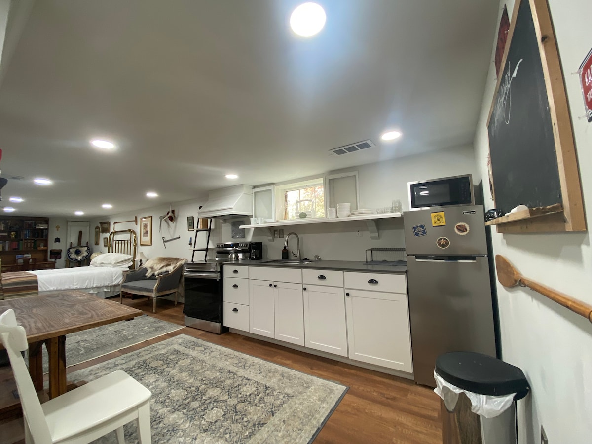 Studio apartman za goste ispunjen umjetninama na mirnoj šumovitoj parceli. Minute od Washingtona su nevjerovatno privatne. Uđite kroz šarmantnu popločanu kapiju u privatnu terasu. Odlično iskustvo spavanja s hipoalergijskom organskom posteljinom. Savršeno za romantični odmor ili bazu za turizam. Police za knjige složene s vodičima i igrama. Parking van ulice. Južni Arlington poznat po raznolikosti, etničkim restoranima i sjedištu Amazona. Blizu autobusa/metroa i poštujemo AirBnB-ov protokol čišćenja koji se odnosi na COVID-19.