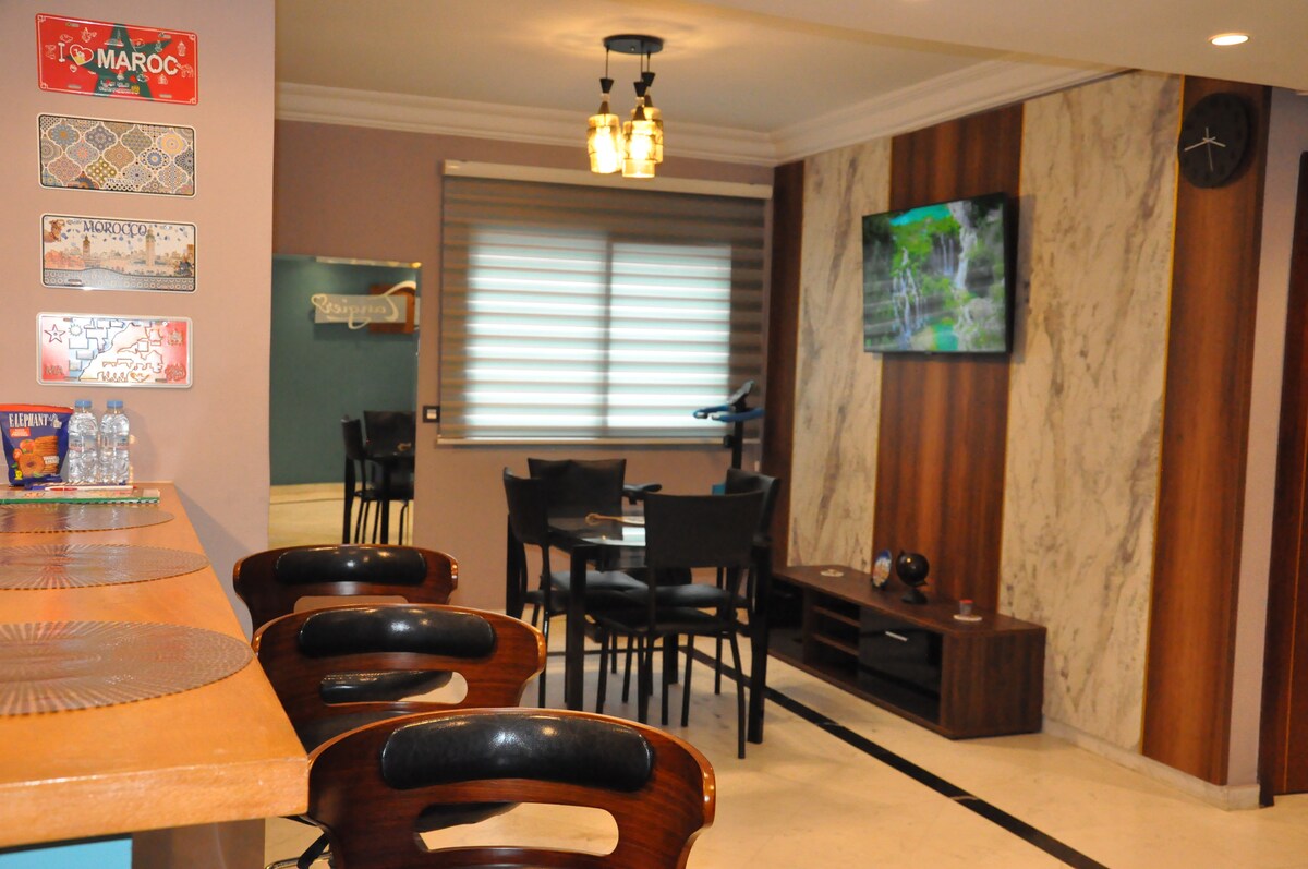 Bienvenue dans notre appartement haut standing, idéalement situé à Tanger 🌇. Notre résidence familiale offre un emplacement privilégié pour explorer la ville. Profitez du confort et du luxe de notre logement avec salon spacieux 🛋️, terrasse ☕, cuisine équipée 🍴, et chambres élégantes 🛌. Nous avons pensé à tout pour rendre votre séjour agréable et mémorable 😊. Réservez maintenant pour des moments inoubliables ! 🎉