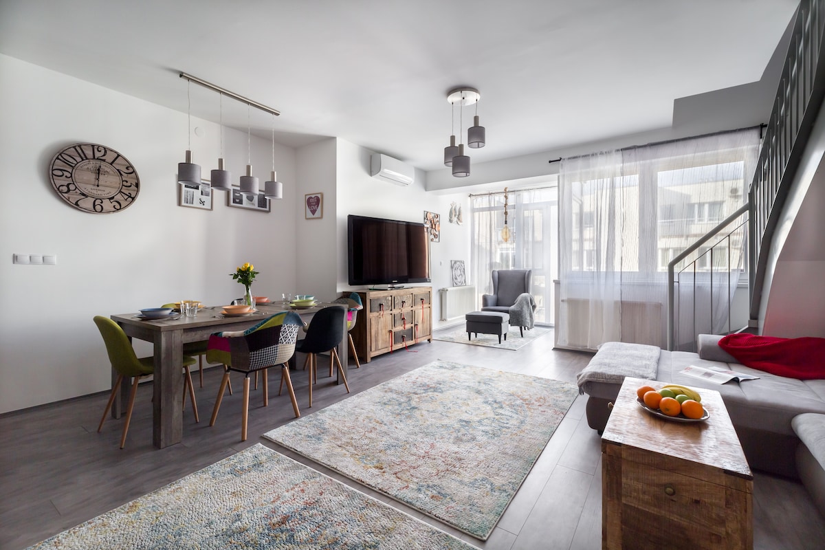 Dobro došli u ovaj glamurozni i udoban penthouse stan u srcu Budimpešte, samo nekoliko minuta hoda od Deák Squarea, odmah pored Gozsdu Courta! Ovaj penthouse stan u centru grada nalazi se u jednom od najuzbudljivijih područja, gdje ne samo da ima mnogo restorana, pubova i kafića, već su i glavne atrakcije, sezonske ulične tržnice udaljene pješice! Stan je u potpunosti opremljen svime što vam može biti potrebno za odmor.
