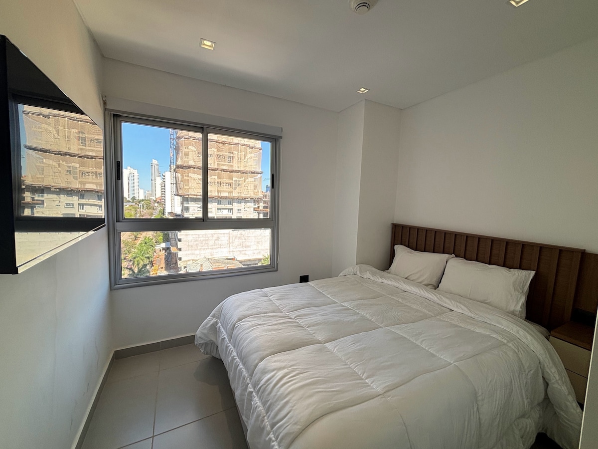 Moderan stan, super opremljen, s balkonom, roštiljem, panoramskim pogledom s 24. sprata i odličnim uslugama: - bazen za plivanje - Coworking - Quincho - Kino – Parking pored samopodiznog uređaja (mali/srednji automobil) - Sigurnost 0-24 Odlično područje: – 5 minuta od Corporate Axis, Shopping del Sol i Paseo La Galería. – 10 minuta od Costanere i mosta Héroes del Chaco. – 15 minuta od Međunarodnog aerodroma Silvio Pettirossi. Uključuje Wi-Fi · Pametni TV · Vrhunski madrac
