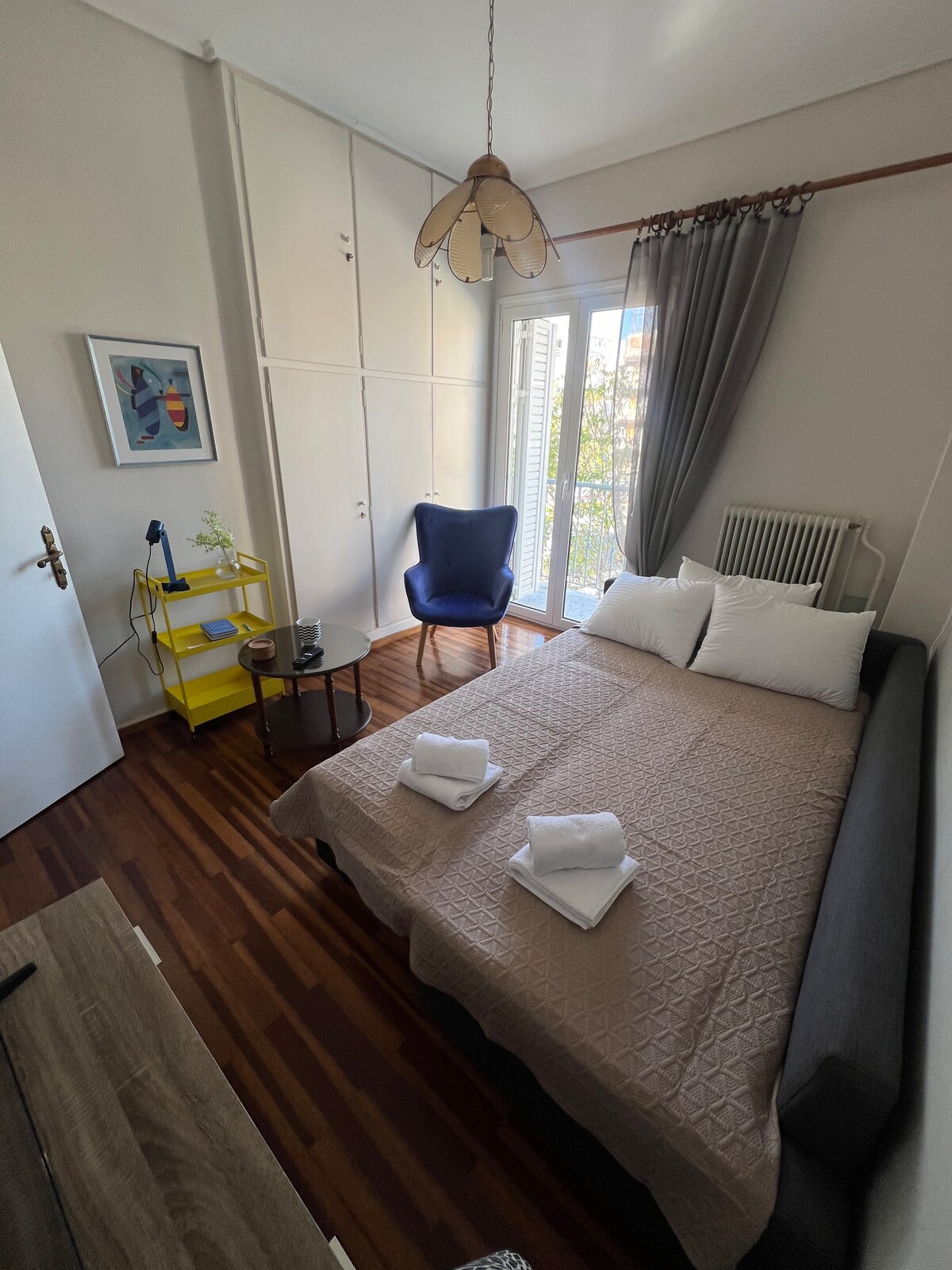 Elegantan stan inspirisan Bauhausom na 1. spratu historijske 100 godina stare zgrade. Renoviran 2023. godine i na korak od brda Lycabetus (manje od 1 minute hoda). Moj smještaj je savršen za parove koji žele pronaći mir i opustiti se u stambenom susjedstvu i žele istražiti Atinu. Opremljen Starlink internetom (brzina od 300+Mbps). Samo 10 minuta od Kolonakija i Pagkratija i lagane šetnje do Exarchije i trga Syntagma. Dišite i opustite se u ovom mirnom, elegantnom prostoru.