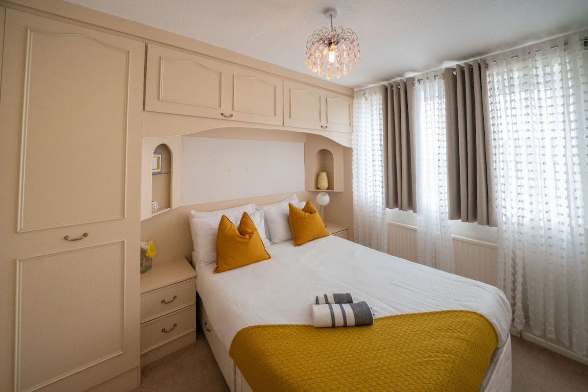 Trosobna poluodvojena kuća u mirnom kvartu s prostranim prilazom i parkingom van ulice. Parking je besplatan i gosti ne moraju rezervisati unaprijed. Kuća također ima prostranu baštu sa stražnje strane, a sobe su također pitke. Wi-Fi i kablovska televizija su također dostupni Ovaj objekat je pogodan za porodice, izvođače radova, ljude koji žele boraviti 15 minuta udaljeni od prometnog područja.