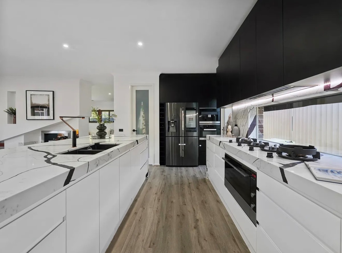 PORUKA ZA SEDMIČNE ILI MJESEČNE SPECIJALITETE. Brass Haus je luksuzno i elegantno iskustvo koje se nalazi u centru grada i ima mogućnost ugošćavanja velike porodice. Ovaj prekrasan smještaj s 4 BDR-a udaljen je samo 5 minuta od aerodroma u Melbourneu, 15 minuta do CBD-a u Melbourneu i 4 minute do poznatog URBN Surfa! Nudimo luksuzne krevete i posteljinu zajedno s besplatnim Netflixom i Prime TV-om s brzim NBN-om. Bez obzira na to radi li se o kratkom zaustavljanju ili dužem boravku, Brass Haus vas pokriva. ZABAVE,DOGAĐAJI ILI KUĆNI LJUBIMCI ZABRANJENI