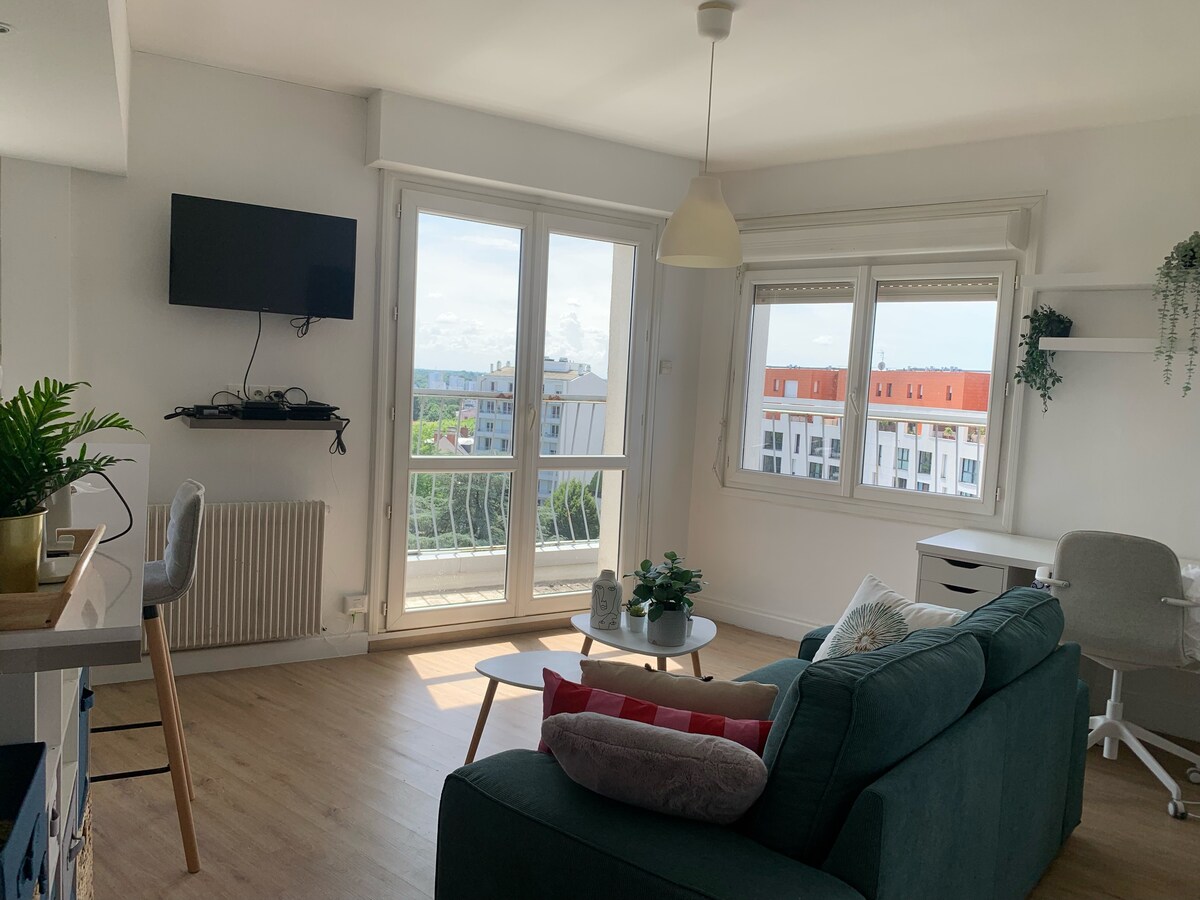 Svijetli stan, smješten na 1. spratu, u rezidenciji završenoj 2021. godine, u poddiviziji, u blizini trkačke staze La Roche sur Yon. Smještaj je miran i idealan za boravak Smještaj se sastoji od jedne spavaće sobe, kupatila sa WC-om i dnevne sobe sa opremljenom kuhinjom. Spavaća soba ima garderobu, TV i radni sto. Ostala oprema: Wi-Fi, kao i zajedničko donje rublje s mašinom za pranje veša. Parking ispred prebivališta. Samostalni dolazak