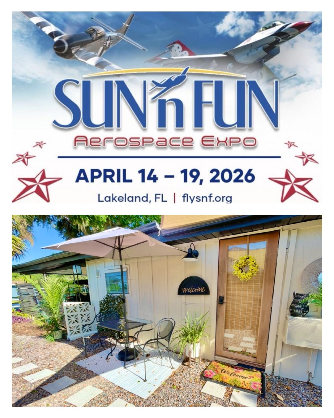 Sunshine Studio + Courtyard, mins from SUN N FUN!