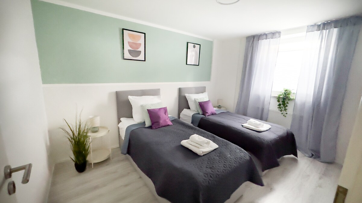 Dobro došli u ovaj elegantni, novouređeni stan u gradskim planinama na vratima Augsburga. Nudi vam sve što vam je potrebno za odličan boravak: → udoban bračni krevet u spavaćoj sobi (širine 180 cm) → nije obavezno, puni, udobni bračni krevet u dnevnom boravku (širine 160 cm) → vlastiti lanai → Smart TV → Nespresso kafa → potpuno opremljena kuhinja → Stropni ventilatori → velika ugaona kada radni sto → podesiv po visini Povezanost → javnim prevozom do Augsburga