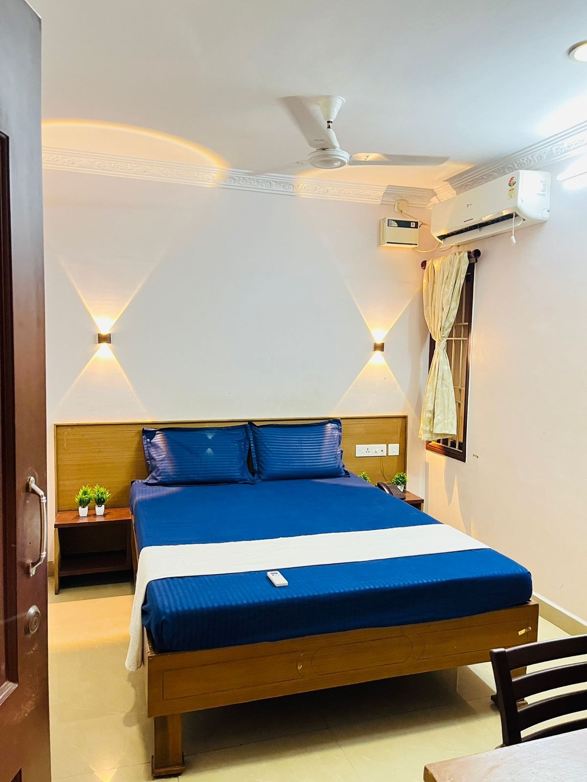 This is a compact, air-conditioned room located on the first floor. Perfect for solo travelers or couples, the room includes high-speed Wi-Fi and a smart TV for your entertainment. The room also features a private balcony overlooking a lively market street, offering a pleasant spot to relax and enjoy the view. Please note: Car parking and lift are not available. Nearby Attractions: Rock Beach – 5 mins drive / 15 mins walk White Town – 10 mins walk Sri Aurobindo Ashram – 10 mins walk