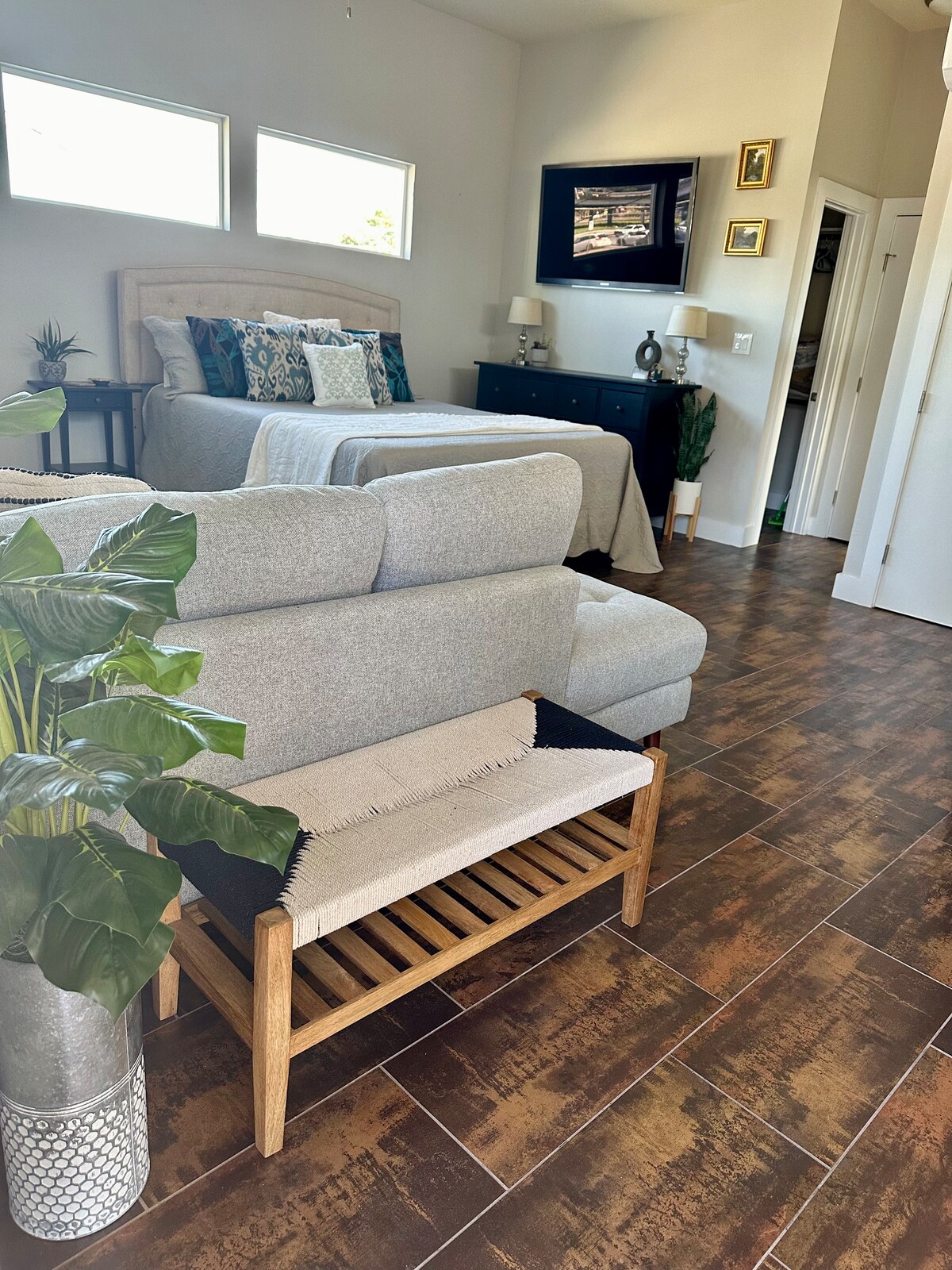 Bingalow je skrovište iz snova ušuškano u srcu East Austina. Zajedno s PRIVATNIM spa + sadržajima u kupatilu, ovo utočište poziva pouzdane goste da uživaju u čarima da ništa ne rade, a sve u roku od 5 minuta hoda od najboljih barova/restorana u Austinu. Naš pažljivo dizajnirani bungalov nudi parne + vanjske tuševe, kade za kupanje od cedrovine (grijane + hladne padine), saunu u bačvi, plišanu posteljinu/ogrtače, digitalnog conciergea + besplatne spa rituale, grickalice + prostirke za jogu.
