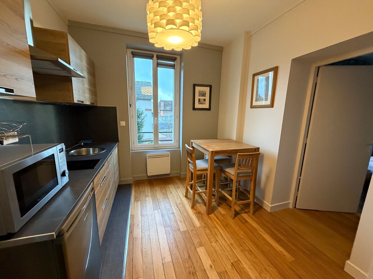 Prekrasan novi stan iznad mirne i sigurne rezidencije, u blizini svih trgovina. Supermarket, gurmanski restoran, prodavnica duhana. 5 minuta vožnje do tržnih centara, željezničke stanice i apoteka. Prošetajte uz Yonne, marinu, 242 km dugačak Burgundski kanal sa 189 prevodnica, pješačku stazu, crkvu Saint-Cydroine izgrađenu između 11. i 12. vijeka i navedenu kao historijski spomenik. Turističke lokacije koje možete otkriti. Odmorite se⛱️