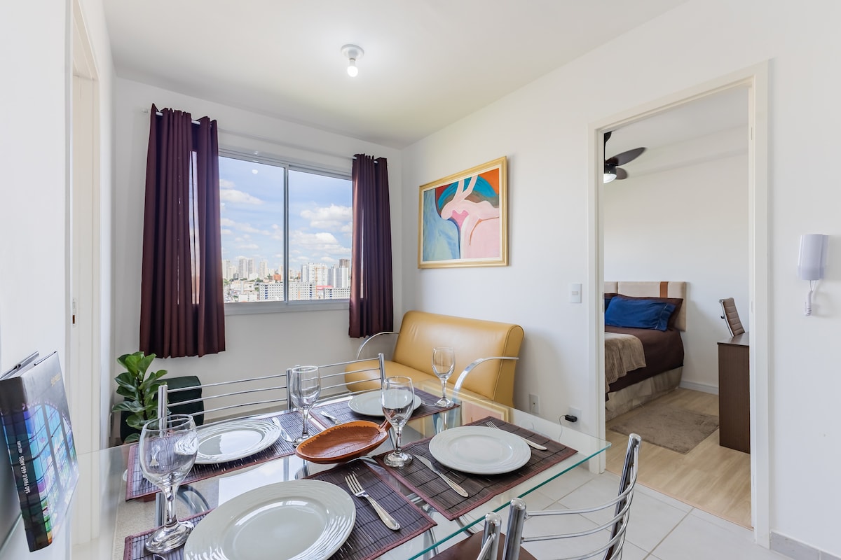 POTKROVLJE S BRAČNIM KREVETOM! U kompletu s balkonom! Desno podnožje od 5 metara! Nevjerovatan pogled! * ** BRAČNI KREVET (ŠIROK 180-179 cm) + kauč na razvlačenje. Potpuno opremljena kuhinja, kućna kancelarija s Wi-Fi mrežom, TV Smart 50" i bračnim krevetom i posteljinom za kupanje! Mercadinho i čekaonica u prizemlju naše zgrade! * 5 minuta metroa Jabaquara * 10 min SP Expo Imigrantes * 11 minuta Shopping Plaza Sul * Aerodrom Congonhas u trajanju od 13 minuta * 5 minuta bolnica São Luiz * 10 minuta Brazilski paraolimpijski centar * 25 min Vibra São Paulo * 7 min CEIC Itaú Srednja vremena.