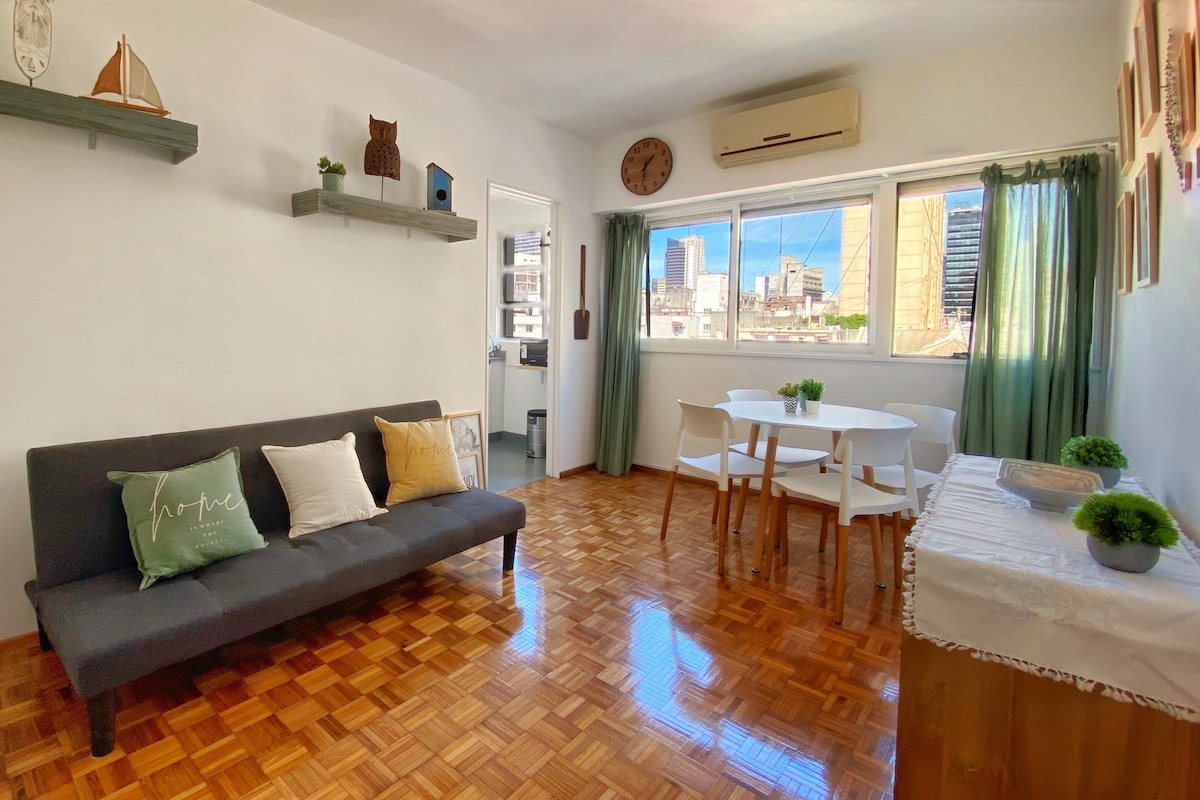 Dobro došli u ovaj udoban, potpuno opremljen stan za ugodan boravak u srcu Buenos Airesa. Uživajte u nevjerovatnom pogledu na obelisk i Av. Corrientes s našeg balkona. Nalazi se u srcu Buenos Airesa, samo 20 metara od podzemne željeznice i metrobusa. Nekoliko minuta hoda do legendarnih mjesta u gradu, kao što su Teatro Colón, Puerto Madero i Pacific Galleries. Potpuno opremljeno: potpuno opremljena kuhinja, topla voda, brzi Wi-Fi i pametni TV s kablovskom televizijom.