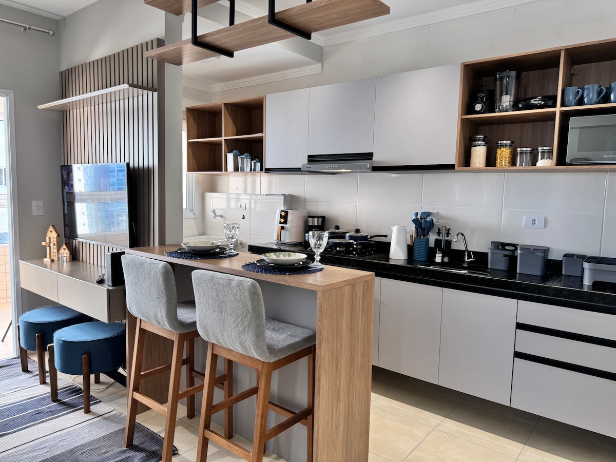 Zabavno i opušteno, stan bloga @ viajandocomamalarosaje idealno mjesto za vaš odmor u Praia Grandeu. ✔ 2 spavaće sobe, dnevna soba, kuhinja, kupatilo i vešeraj ✔ Kućni ured s Wi-Fi mrežom od 300 MB ✔ 1 parking mjesto, 24-satni vratar, liftovi i sigurnosne kamere ✔ 50" TV s Netflixom, youtubeom i Alexom ✔ Sobe s zavjesom za zamračivanje i novim stropnim ventilatorom Pogled na✔ more iz svih soba ✔ Pored najbolje pekare, restorana i kioska na plaži PG * Spavajte uz zvuk mora =D ♡♥