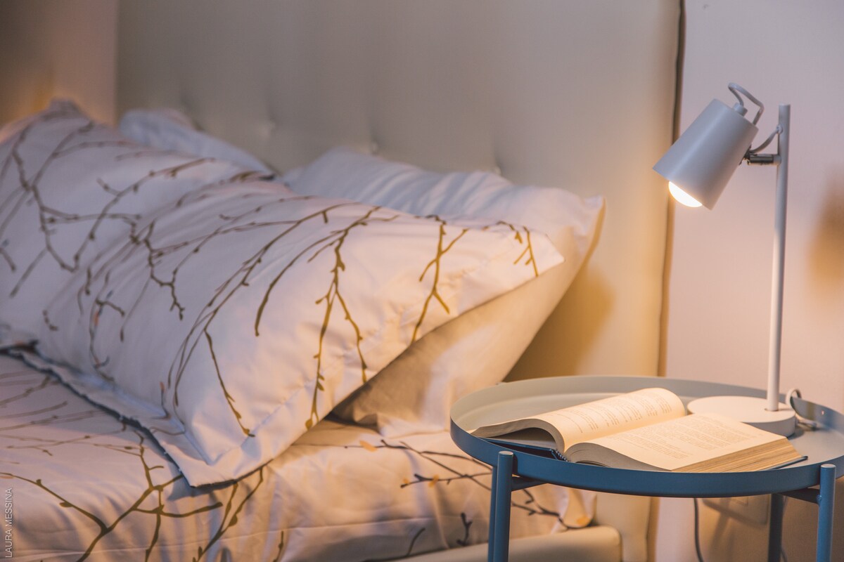 Step into a home where the minimalist decor is elevated by designer lighting, vintage furnishings, and contemporary art adorning the walls. The apartment is on a top floor 1880 building, NO ELEVATOR (travel light), the location is on the centre of Siracusa (5 min walk from Ortigia and the other amenities of the town) bars restaurants and small and big supermarkets are walking distance (maximum 5 min) . There's one bed room (ask if you need a baby bed) with a double queen size bed. One spacious bathroom and a kitchen. A full furnished apartment with everything you need, coffee maker, kettle, washing machine dishes. The terrace has a unique view, perfect for dinners and an aperitivo at sunset. Over looking on the small bay the east view and the west view overlooking on the mountains, if you're lucky you'll be able to see the Volcano Etna. I use to live on the same floor, in another apartment at the next door Archeological park is 10 min walk, the bus station and train station are 5 min walk, beach and historical sites in less then 10 min walk.