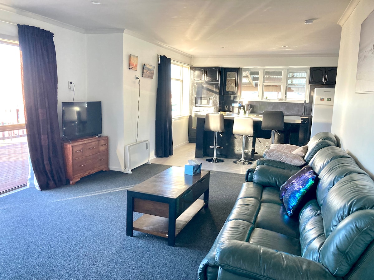 Svijetla dvosobna kuća s velikim salonom i vrlo sunčanim zimskim vrtom. U roku od 10 minuta hoda do stadiona ILT i Velodroma, 5 minuta do lokalne taverne i 10 minuta do druge. Lokalne prodavnice s hranom za ponijeti, hemičar, restoran u krugu od 10 minuta hoda. Muzej kamiona 4 minute vožnje i motociklistička Meka oko 8 minuta vožnje. U blizini se nalazi Queens Park, raj s hladnim klimatskim vrtovima i pješačkim stazama. Bluff je udaljen samo 20 minuta vožnje. 1 1/2 -2 sata vožnje od Queenstowna, Te Anau, Central Otago.