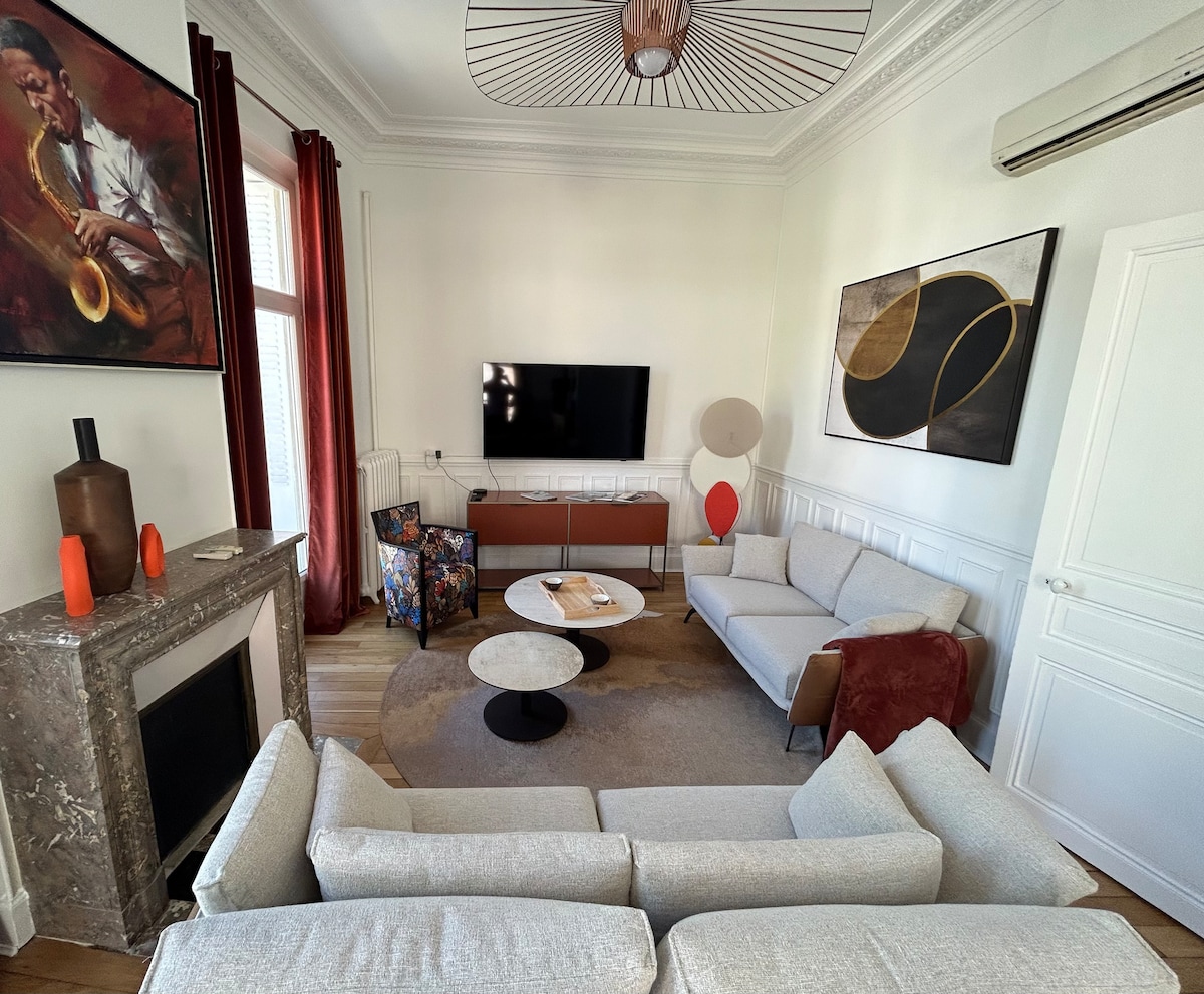 Privilegirana lokacija u podnožju Avenue de Champagne, hiper centra i u blizini željezničke stanice (100 m). U blizini su svi sadržaji i turističke aktivnosti. Boravit ćete na mirnoj, funkcionalnoj lokaciji s urednim dekorom, u sigurnom objektu, u prizemlju. Uživat ćete u privatnoj namještenoj terasi (s dostupnim roštiljem). Mogućnost parkiranja bicikala u ulaznom hodniku. Obezbijeđena posteljina i peškiri. Odvojeni WC.