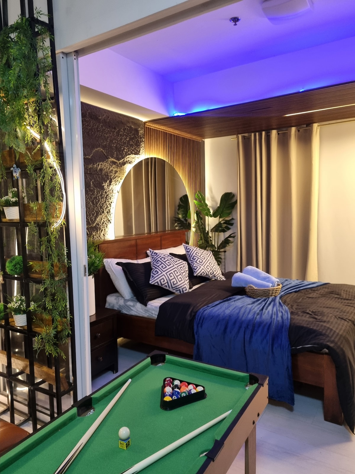 Dobro došli u Cozy Nook PH NA 15F Maldives Tower, Azure Urban Resort Residences! Doživite savršenu mješavinu industrijskog udobnog i umjetničkog dizajna u našem kondominiju s 2 kreveta i 1 kupatilom. Ovaj pažljivo uređeni prostor je dizajniran da vam pruži udobnost i stil tokom boravka. • Igraća konzola: 20.000 klasičnih igara za više igrača s 2 kontrolera • Društvene igre • Karaoke • Kartanje • Wi-Fi od 300 MB/s • Balkon s pogledom na Sunrise City • Pametni TV od 55 inča s Netflixom