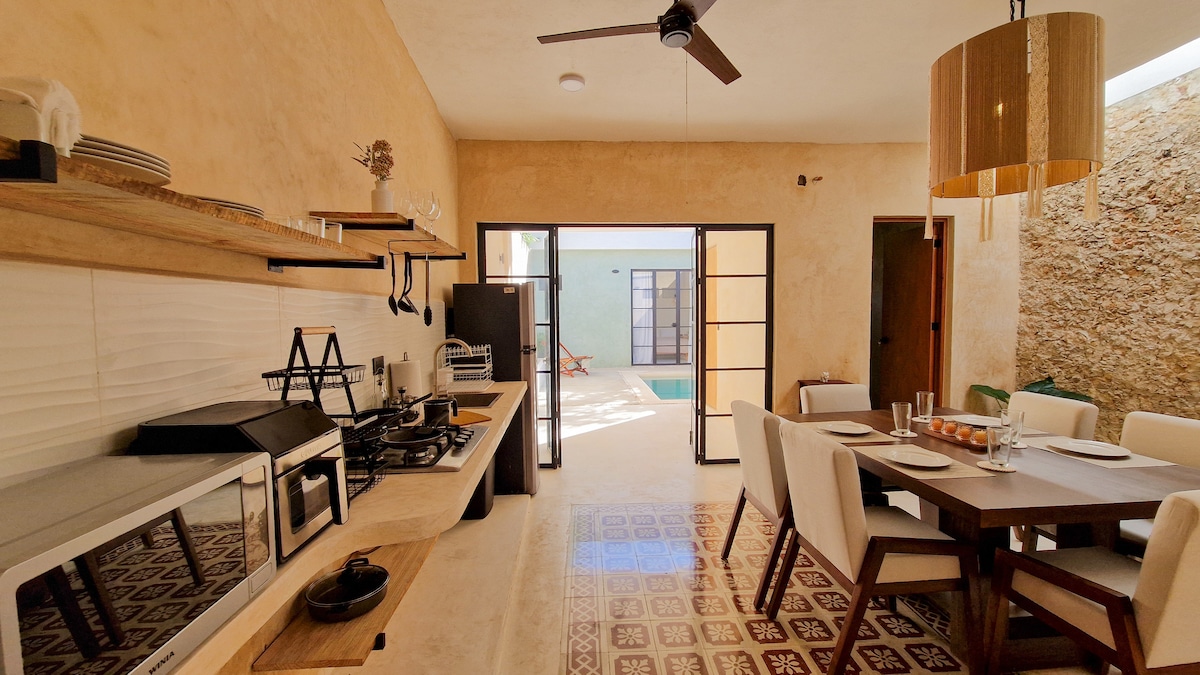 Uživajte u smještaju Casa Norka, kompletnoj kući s privatnim bazenom i šarmantnim tropskim dvorištem, savršenoj za opuštanje i predah od vrućine Yucatana. Miran i udoban prostor idealan za parove, prijatelje ili porodice koji traže privatnost i udobnost. Opustite se u bazenu, uživajte u visećim ležaljkama ili provedite poslijepodne na otvorenom. Nalazi se u mirnom području s jednostavnim pristupom Meridi, restoranima i atrakcijama u regiji. Vaše tropsko utočište za odmor i uživanje.